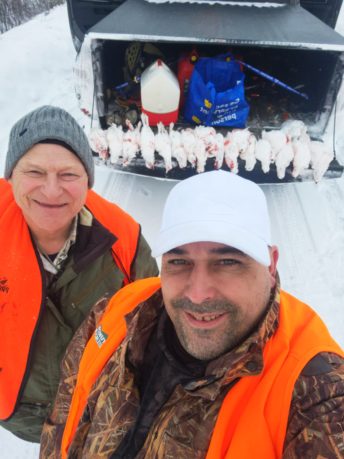 L’auteur et son ami Marc Bois avec une belle récolte de lagopèdes.